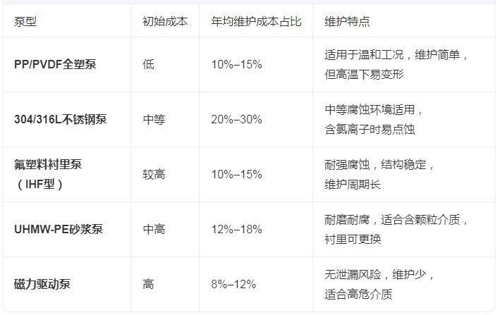 二、不同类型防腐泵的维护成本对比